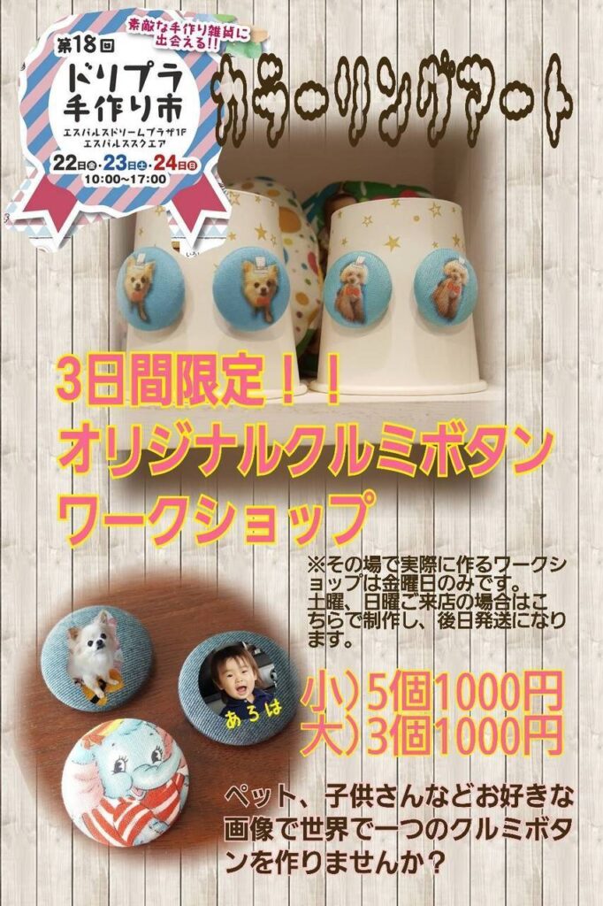 エスパルスドリームプラザ1階エスパルススクエアにて手作り市が開催されます!