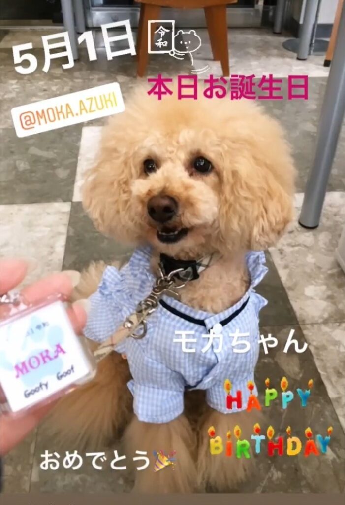 今日お誕生日のトイプードルのモカちゃん。お誕生日おめでとうございます🎉令和の5月1日お誕生日なんて。。記念になりますね~
