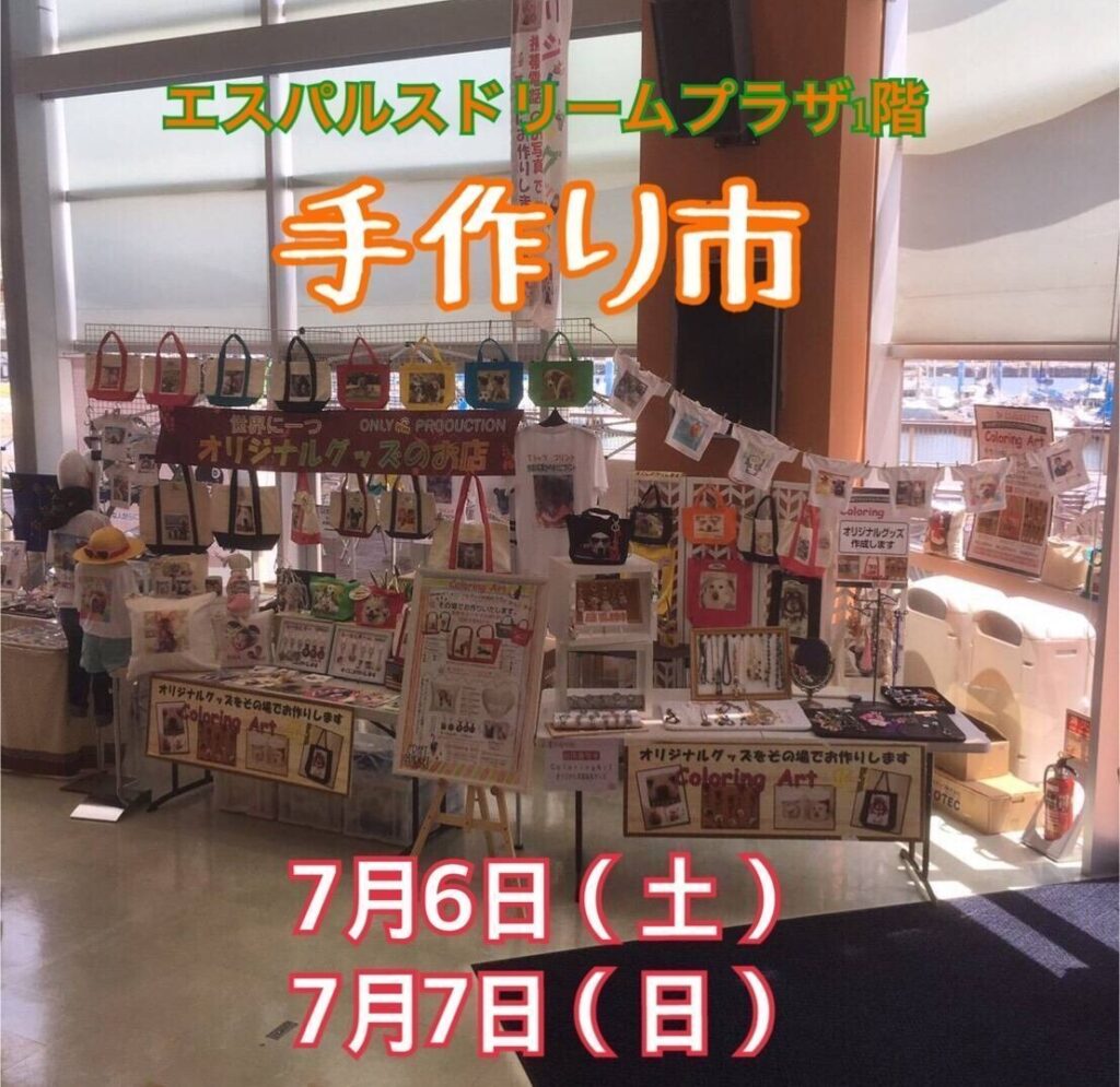 7月6日7日はエスパルスドリームプラザ、手作り市です。今回も何かイベント考えておりますので、是非手作り市ご来店下さいませ。
