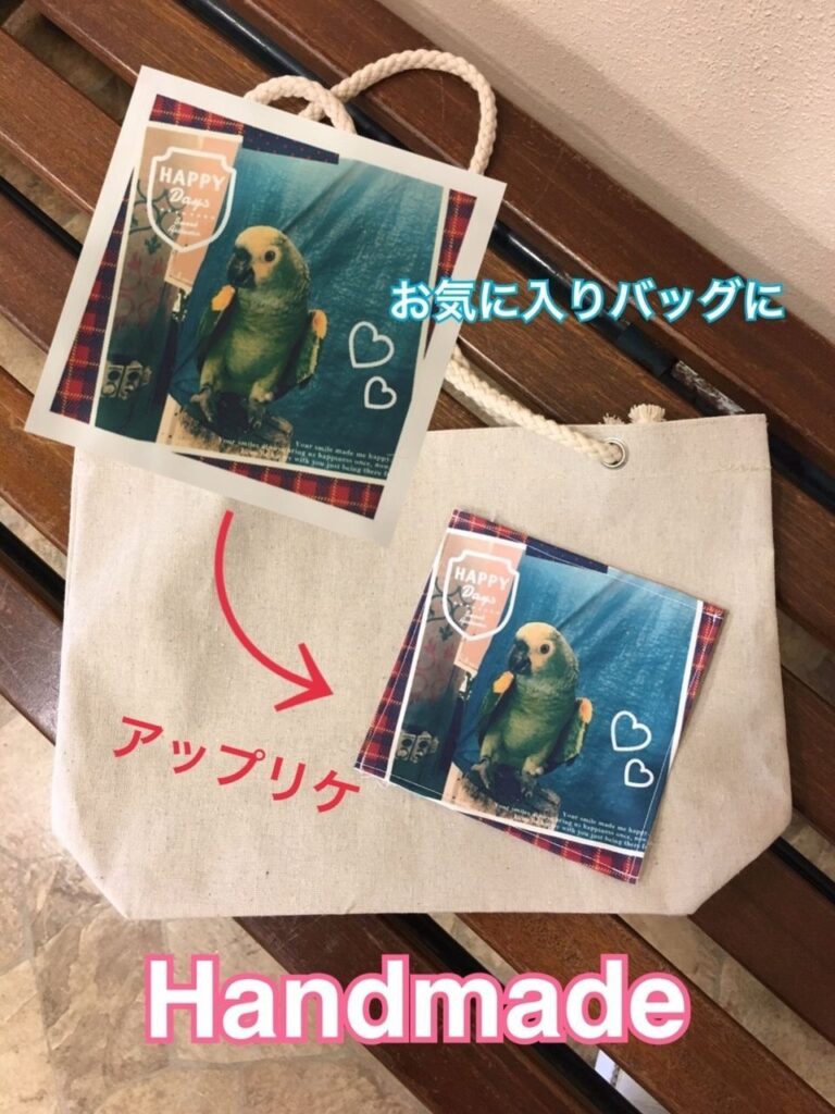 プリントした布を、お持ちのバッグやクッションにアップリケしちゃえば