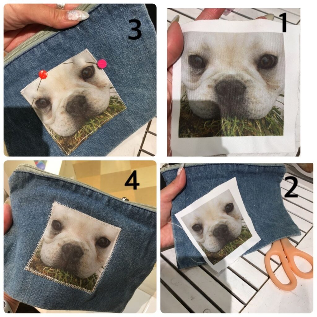 プリントした布を、お持ちの布製品にアップリケしちゃって下さい。