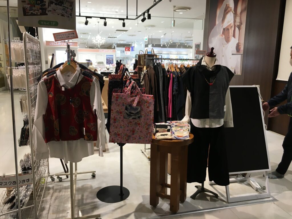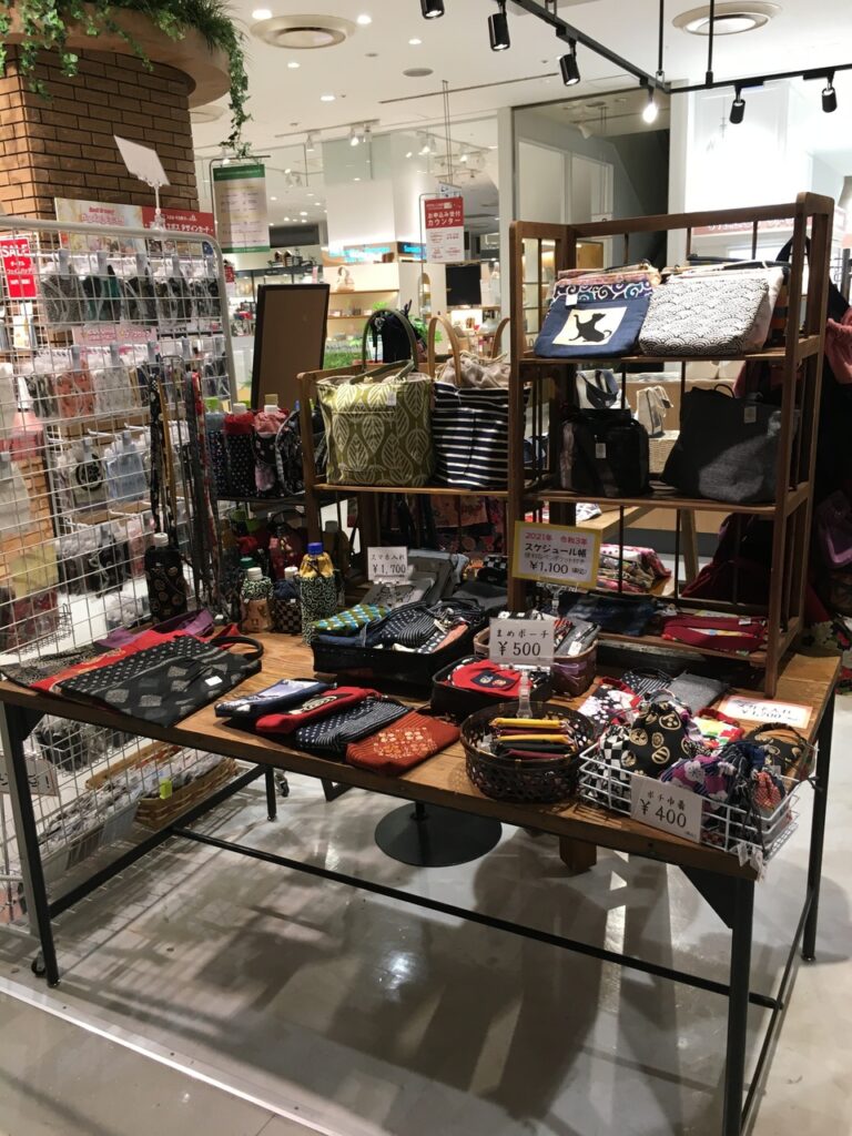 和雑貨手作り工房FUJITAさんの人気のマスクや、和柄バッグ、和雑貨も一緒に並んでいます。