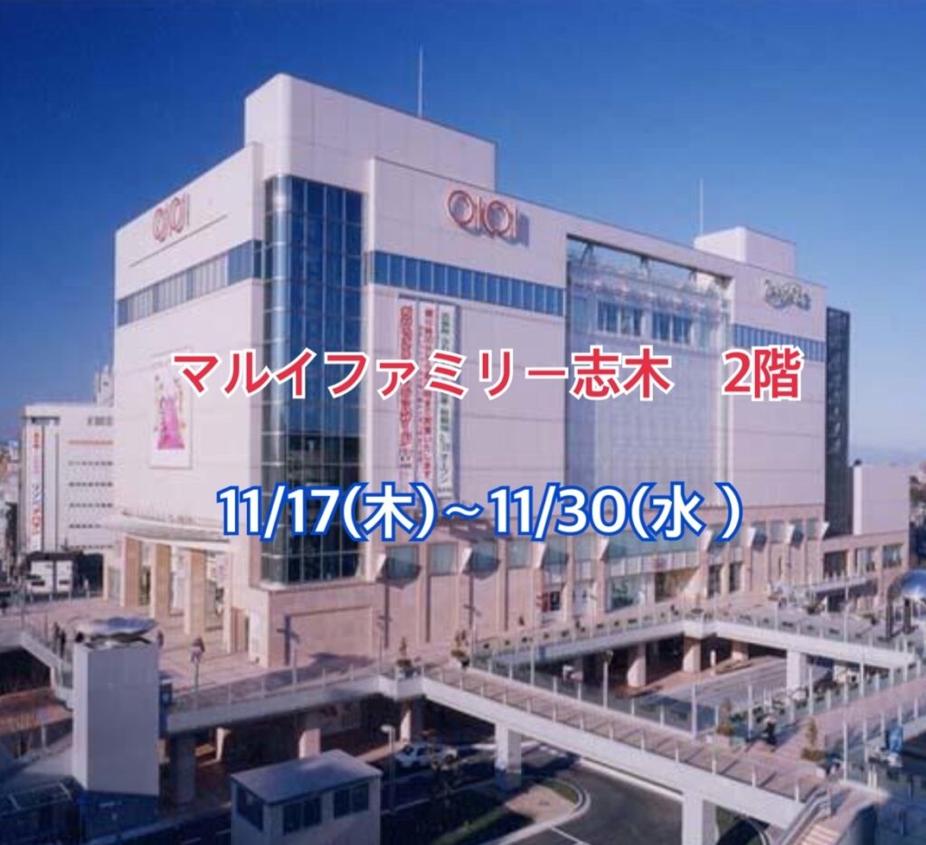 11月17日から11月30日まで、埼玉県志木駅前のマルイファミリー志木店にて、出店です!