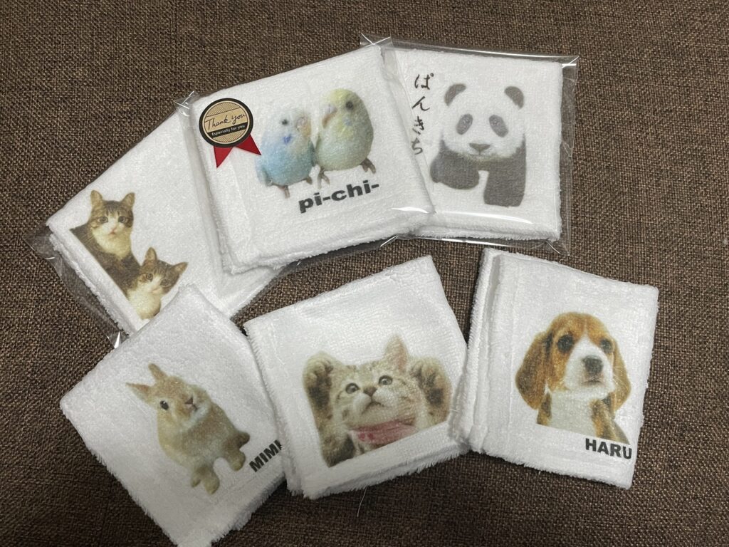 ワンポイントプリントも出来るので四つ折りにしてバッグに入れて持ち歩ける。プレゼントにも喜ばれます。