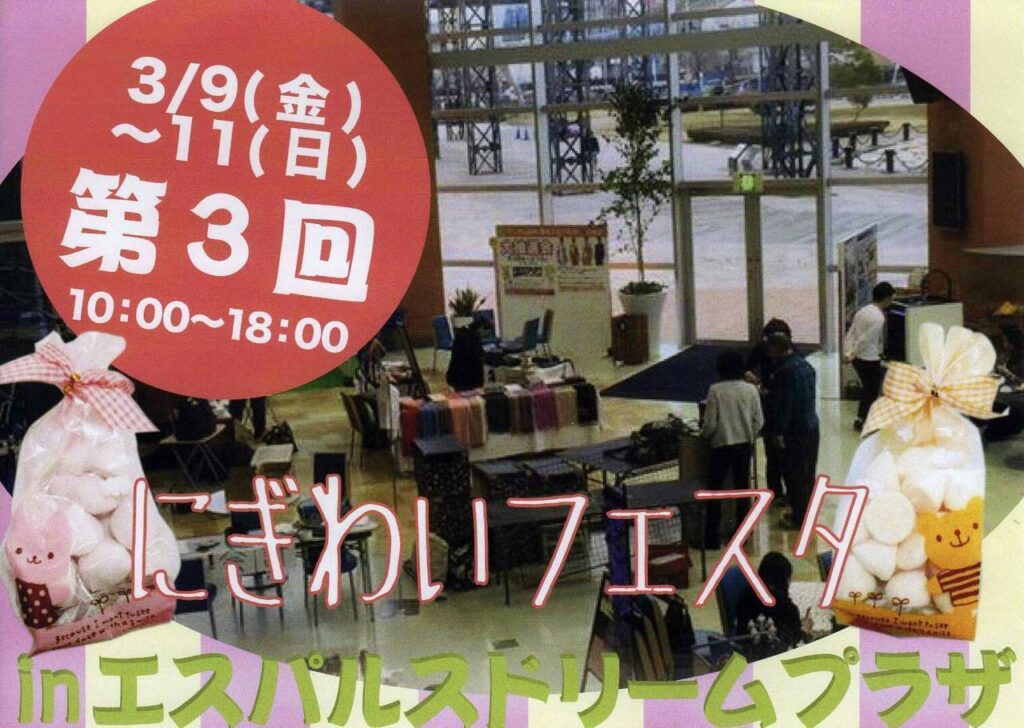 3月9日(金)~11日(日)エスパルスドリームプラザ1階エスパルススクエアにて、にぎわいフェスタ開催です❗オリジナルグッズカラーリングアートも、プリントグッズ販売致します✨今回はなんと❗❗ご好評頂いております、リアルチャームを自分で作っちゃおっ👍... -