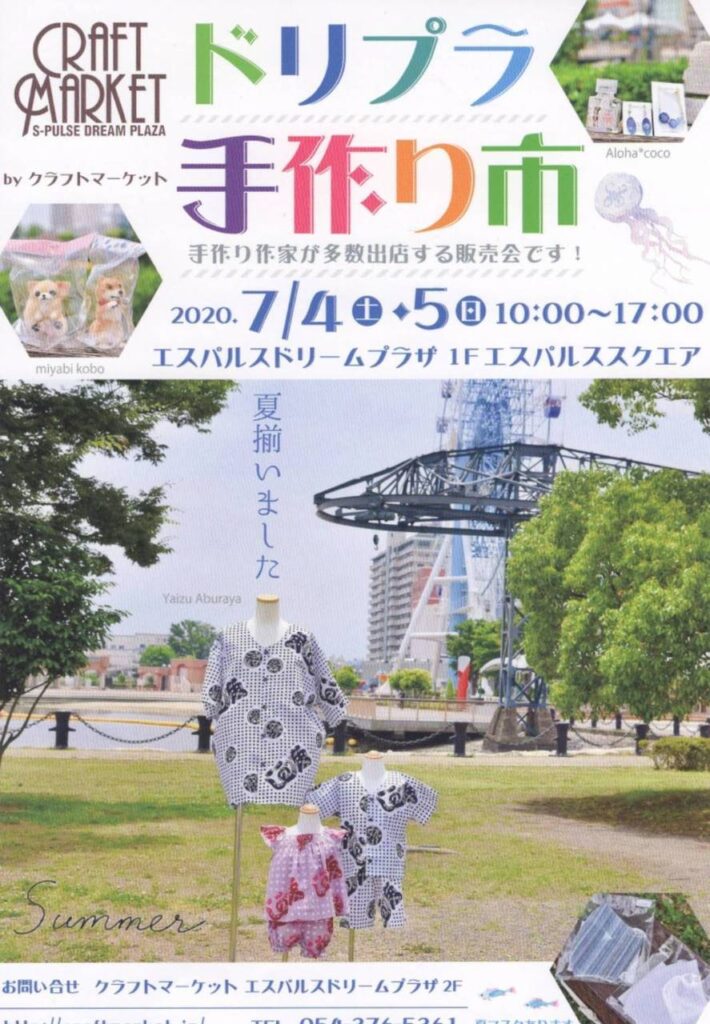こんにちは!7月になりました。7月のイベント出店お知らせします。 7月4日(土)5日(日)エスパルスドリームプラザ1階エスパルススクエアにてクラフトマーケット主催手作り市開催です。 夏用のドライ素材、通気性の良いマスク販売します。もちろんプリ... -