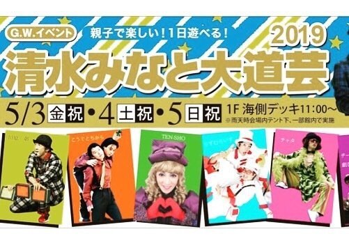 ~令和元年~ゴールデンウィーク5月3.4.5日 毎年恒例~清水みなと大道芸がエスパルスドリームプラザで開催されます!今年は10周年。清水みなと大道芸は、毎年40組以上のパフォーマーさんが清水に集結~エスパルスドリームプラザで技を披露する大イベントで... -